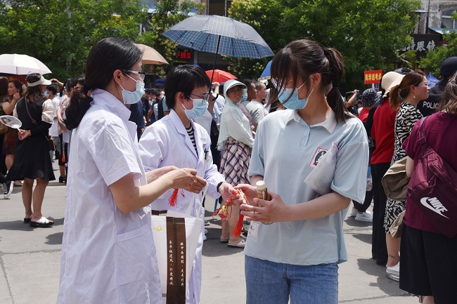 6月7日上午,我院党员自发组成两支医疗志愿者服务队联合市医疗志愿者协会,分别在亳州一中和亳州五中两个考点开展志愿服务,特别准备了千份香囊助力高考学子。香囊配料采用纯中药配方,香包配料含苍术、藿香、艾叶等十几种中草药,具有“芳香化湿、开窍避秽”的功效。