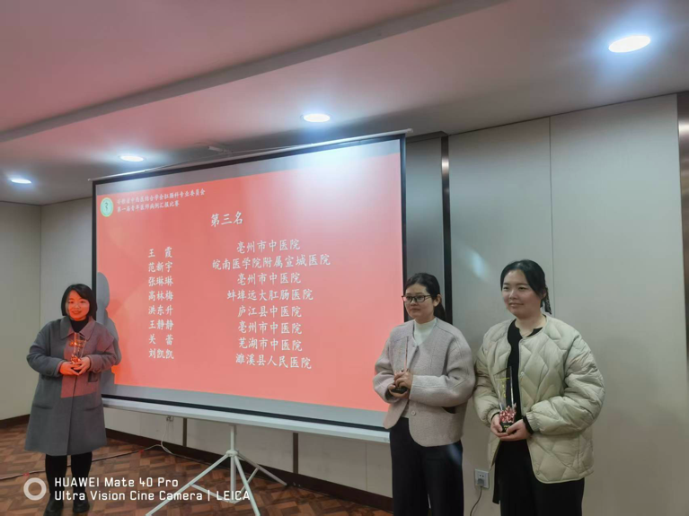最后,郜娟梅、马雅丽、李静以及刘梦珂四人斩获大赛二等奖,王霞、王静静、张琳琳三人获得三等奖。与此同时,在29日举办的第三届安徽省中西医结合学会肛肠专业委员委员代表大会中,肛肠科主任、主任医师聂枫在选举投票中当选副主任委员及常务委员。