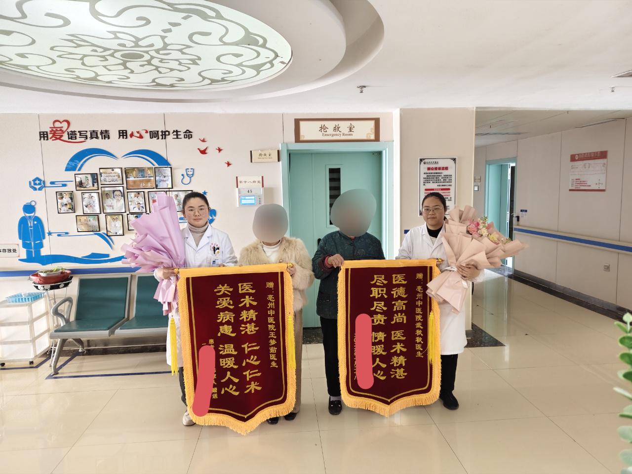 近日,两面分别印有“医德高尚医术精湛、尽职尽责情暖人心”和“医术精湛仁心仁术、关爱病患温暖人心”的锦旗,被送至肺病科二病区医生办公室。锦旗上熠熠生辉的字句,承载着患者家属对武秋秋主治中医师及王梦茹中医师深厚的认可与感激。
