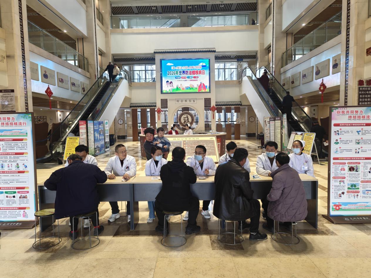3月26日上午,我院在门诊大厅举办世界防治结核病日主题义诊活动,来自医院急诊科、肺病科、肛肠科、急诊科等多个科室的医护专家团队为市民提供免费诊疗与健康咨询服务,以实际行动助力结核病防治知识普及。