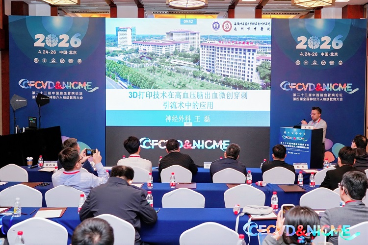 在脑出血分会场,王磊作了《3D打印技术辅助高血压脑出血微创穿刺引流术的应用》的专题报告,他结合科室实操案例,详细阐述了该技术在我院的临床应用经验,得到了与会专家的认可与好评。