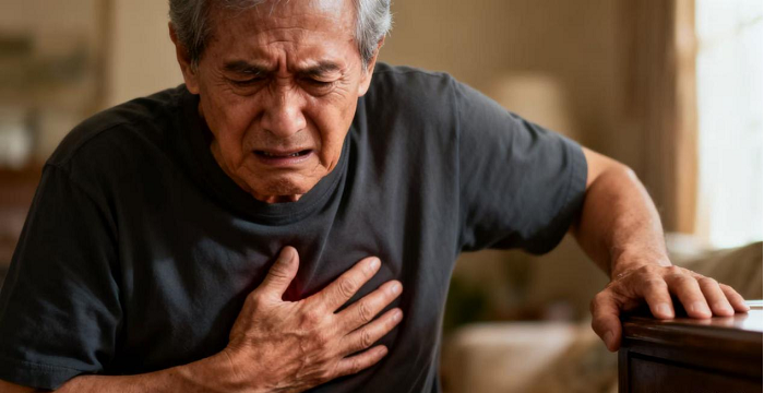 3. 胸口有压迫感、发紧,或感觉肩膀、后背、下颌隐隐作痛(非典型心梗信号);