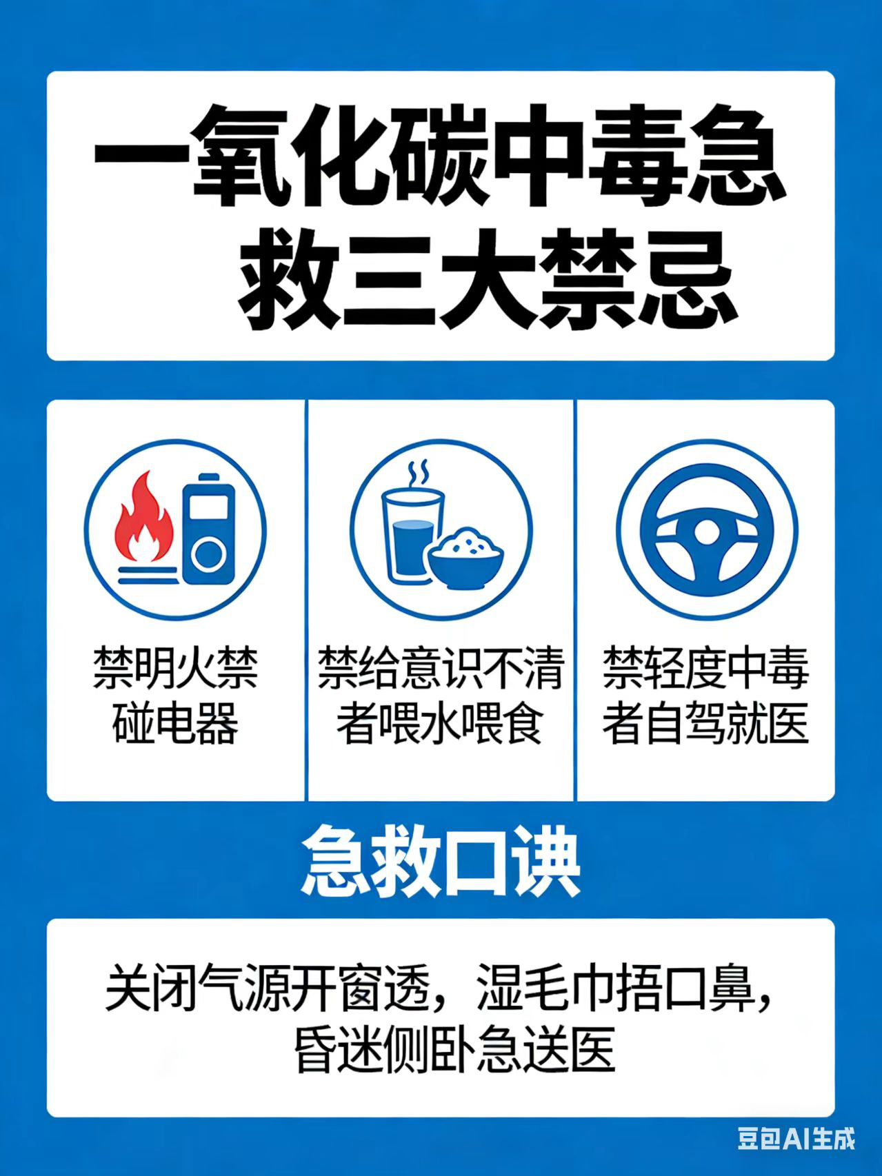 特别提醒:冬季取暖、使用燃气热水器时,若多人同时出现类似症状,需优先警惕一氧化碳中毒。
