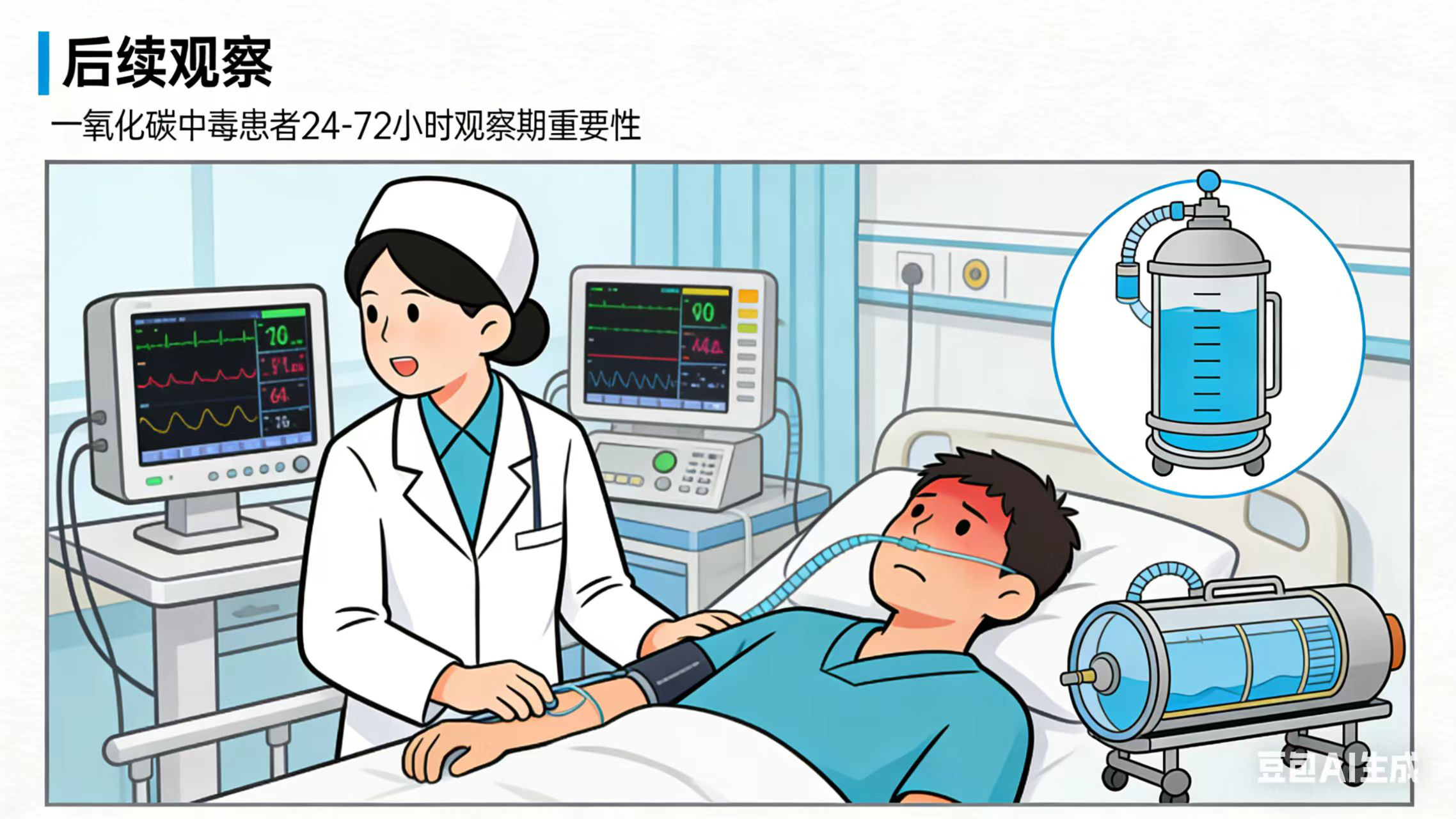 2. 病情监测:中毒后2-4周是迟发性脑病的高发期,即使患者初期症状缓解,也需密切观察,若出现记忆力下降、反应迟钝、肢体无力、癫痫发作等,需立即复诊。
