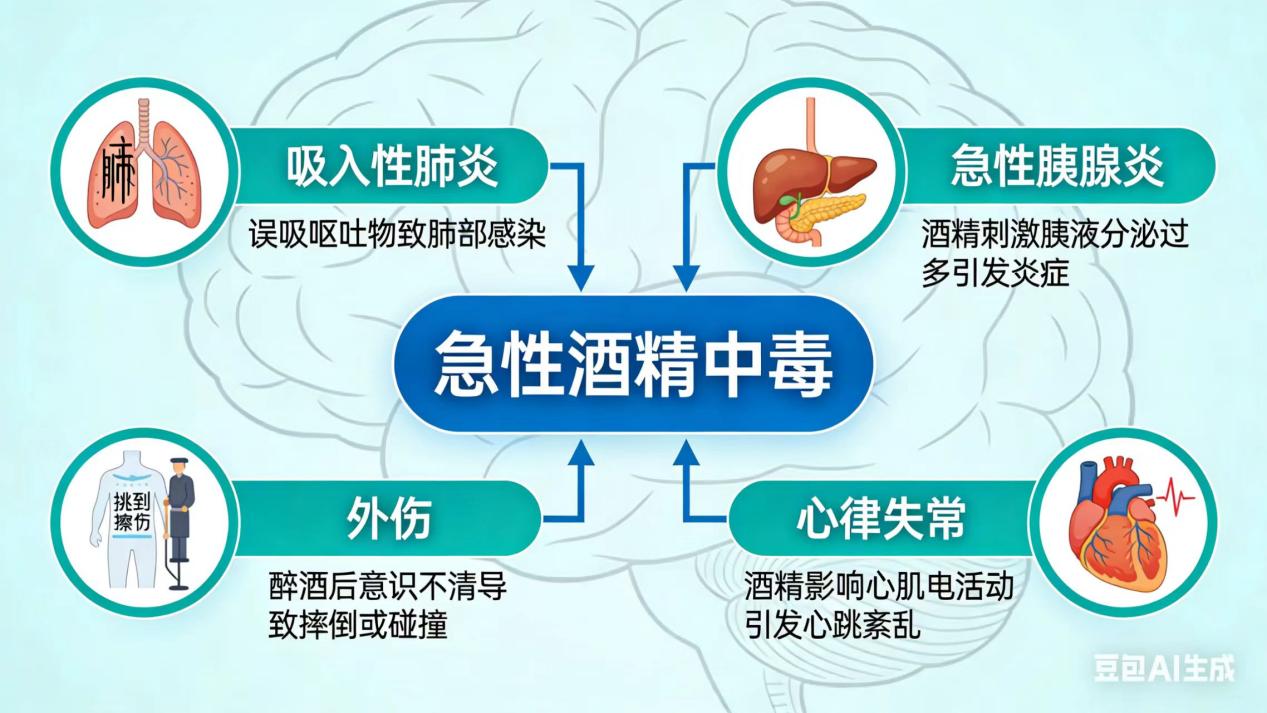 误区二:催吐防醉——人为催吐易引起贲门撕裂,导致消化道出血;在意识不清状态下催吐,呕吐物误吸风险极高,可能瞬间致命。